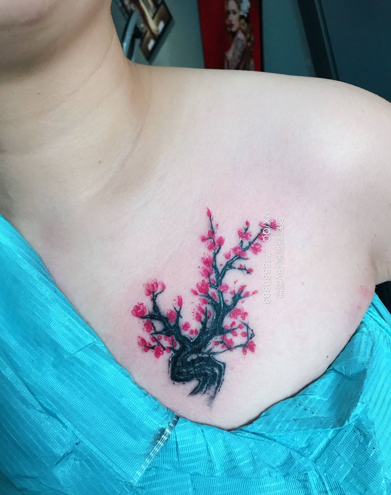 遮盖作品‘梅花’纹身图片_胸部水墨纹身图案