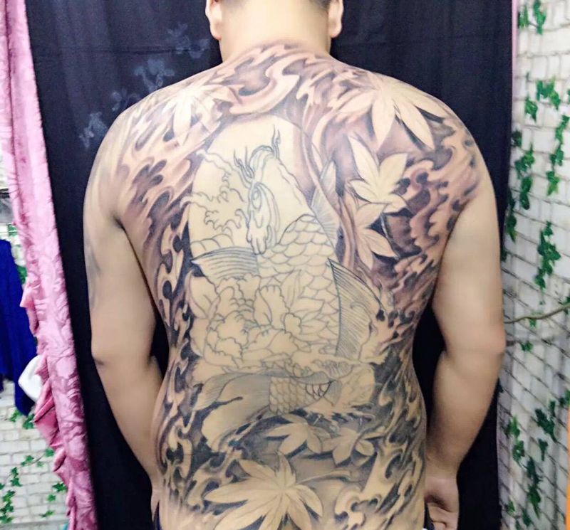 • T云龙九郎纹身图片_背部老传统云龙九郎纹身图案