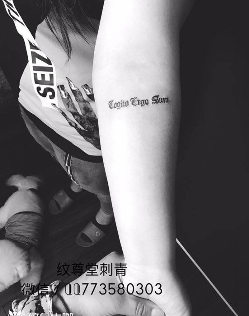 当前位置: 首页 >河北省秦皇岛市纹身店-纹尊堂刺青纹身图案>“ 我思故我在 ,Cogito,ergo sum。纹身图片