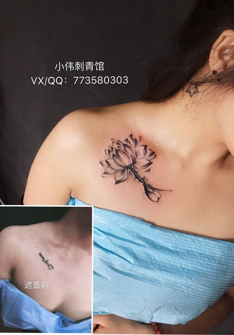 遮盖作品~荷花纹身图片