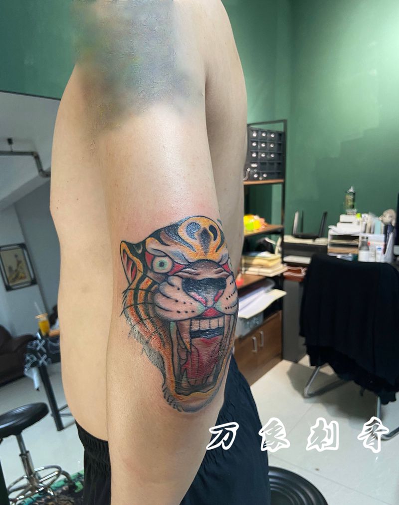 当前位置: 首页 >河北省唐山市纹身店-万象刺青纹身图案>old school老虎头爆肘纹身图片_手臂Old School纹身图案