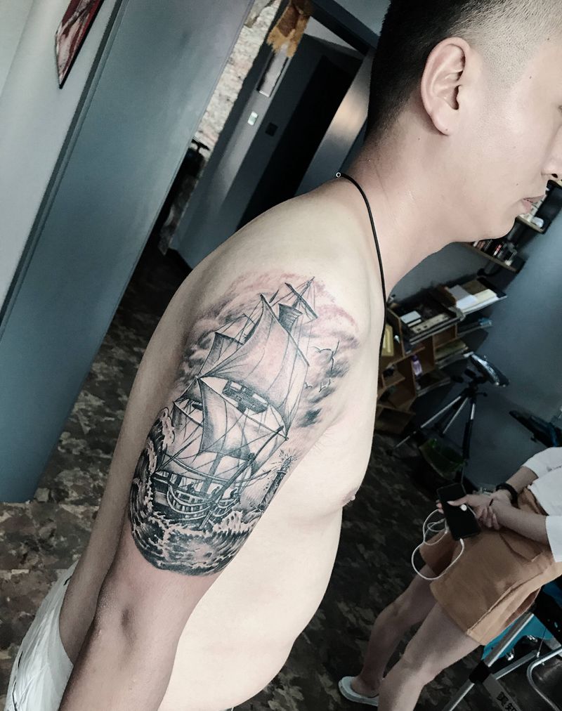 当前位置: 首页 >河北省秦皇岛市纹身店-纹尊堂刺青纹身图案>帆船纹身图片_手臂欧美写实纹身图案