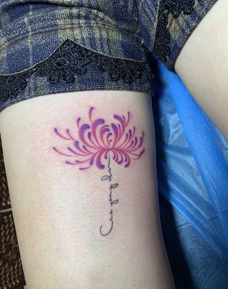 当前位置: 首页 >河北省秦皇岛市纹身店-秦皇刺青纹身图案>彼岸花纹身图片_腿部纹身图案