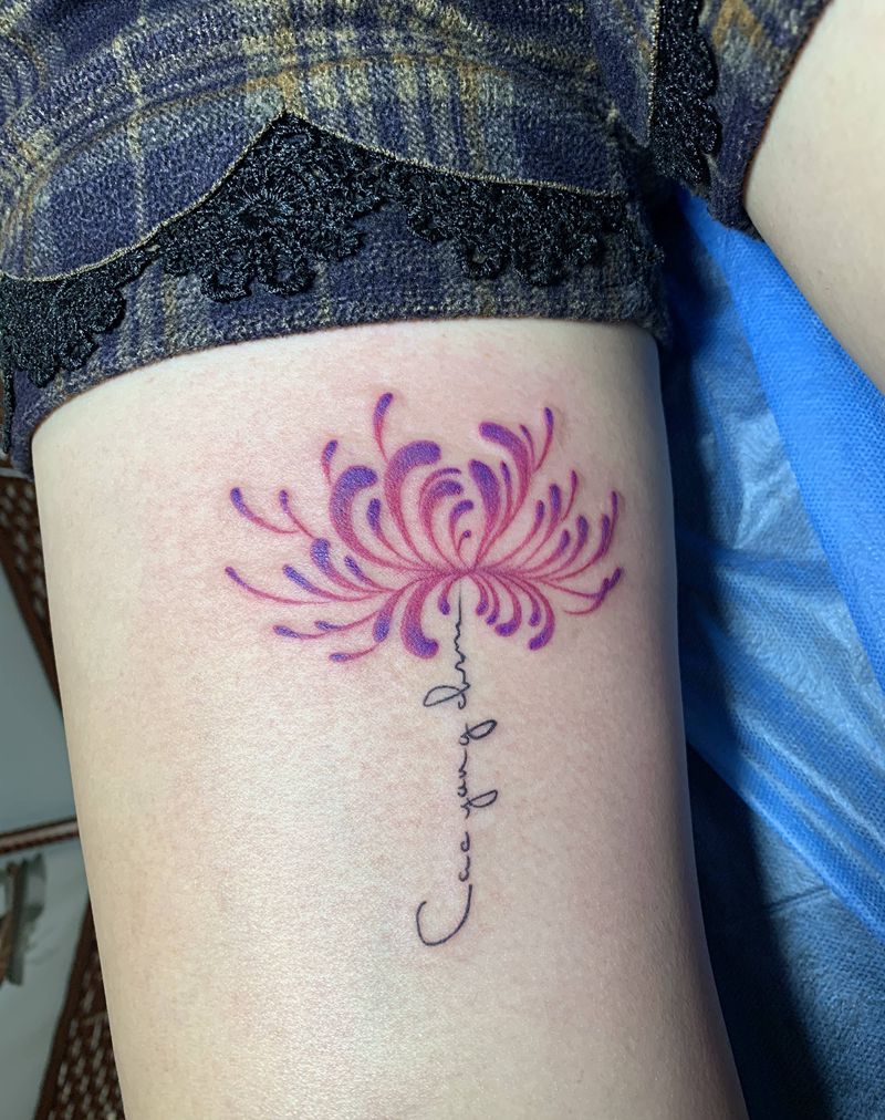 当前位置: 首页 >河北省秦皇岛市纹身店-秦皇刺青纹身图案>彼岸花纹身图片_腿部纹身图案