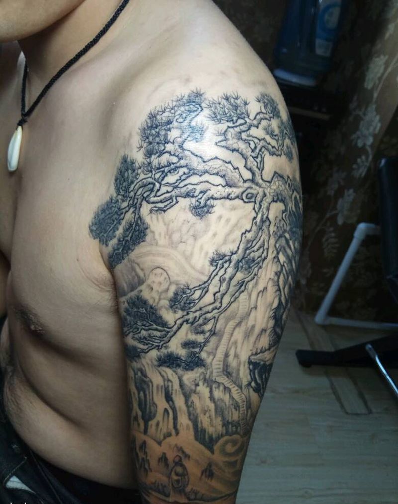 当前位置: 首页 >河北省秦皇岛市纹身店-秦皇刺青纹身图案>水墨花臂纹身图片