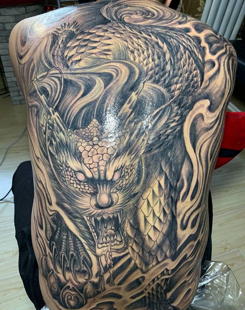 • T云龙九郎纹身图片_背部老传统云龙九郎纹身图案