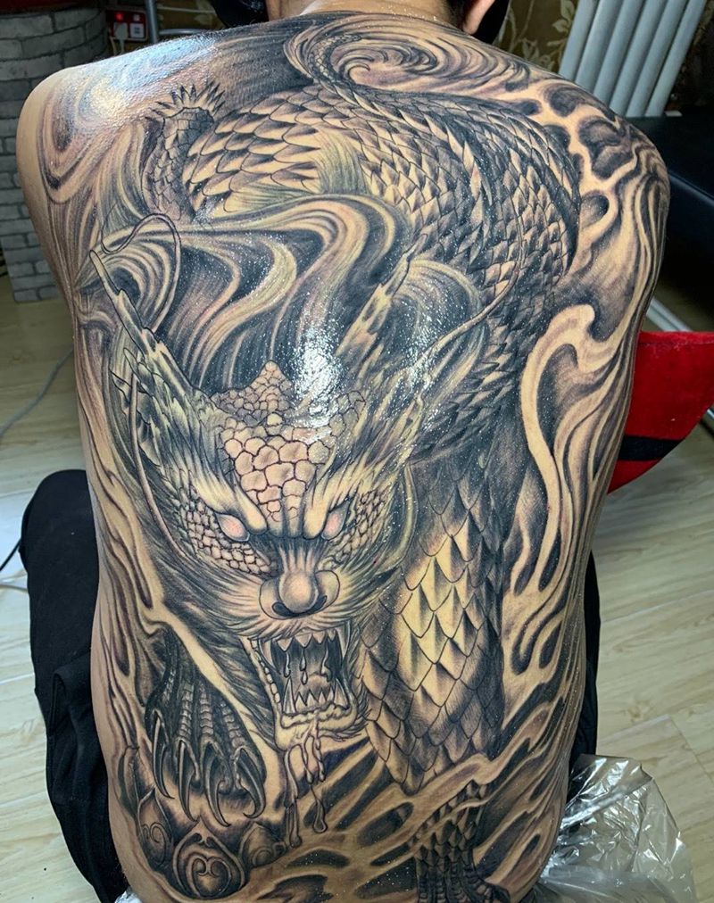 • T云龙九郎纹身图片_背部老传统云龙九郎纹身图案