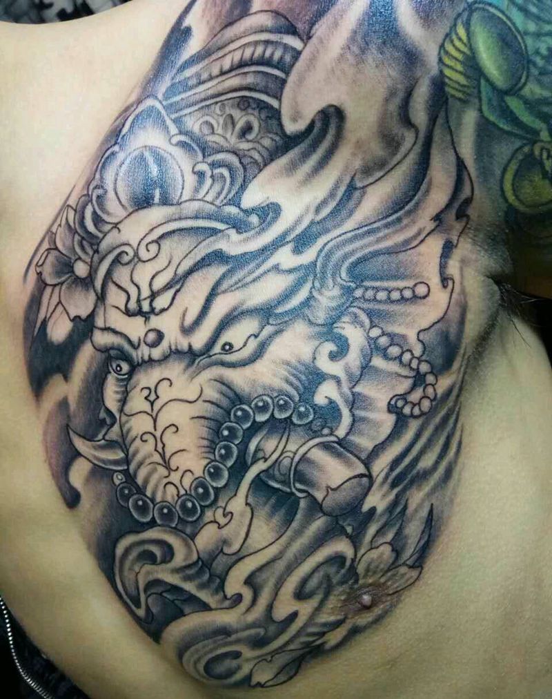 当前位置: 首页 >河北省秦皇岛市纹身店-秦皇刺青纹身图案>前胸象神纹身图片