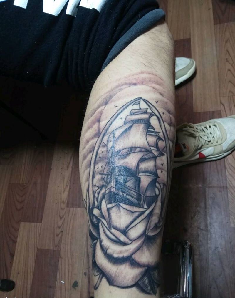 一帆风顺爱的海洋纹身图片_腿部欧美清新写实原创手稿纹身图案
