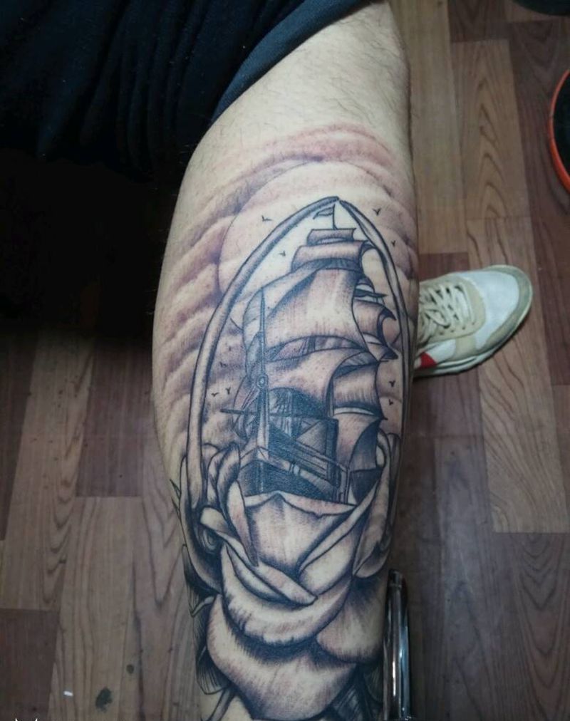 一帆风顺爱的海洋纹身图片_腿部欧美清新写实原创手稿纹身图案