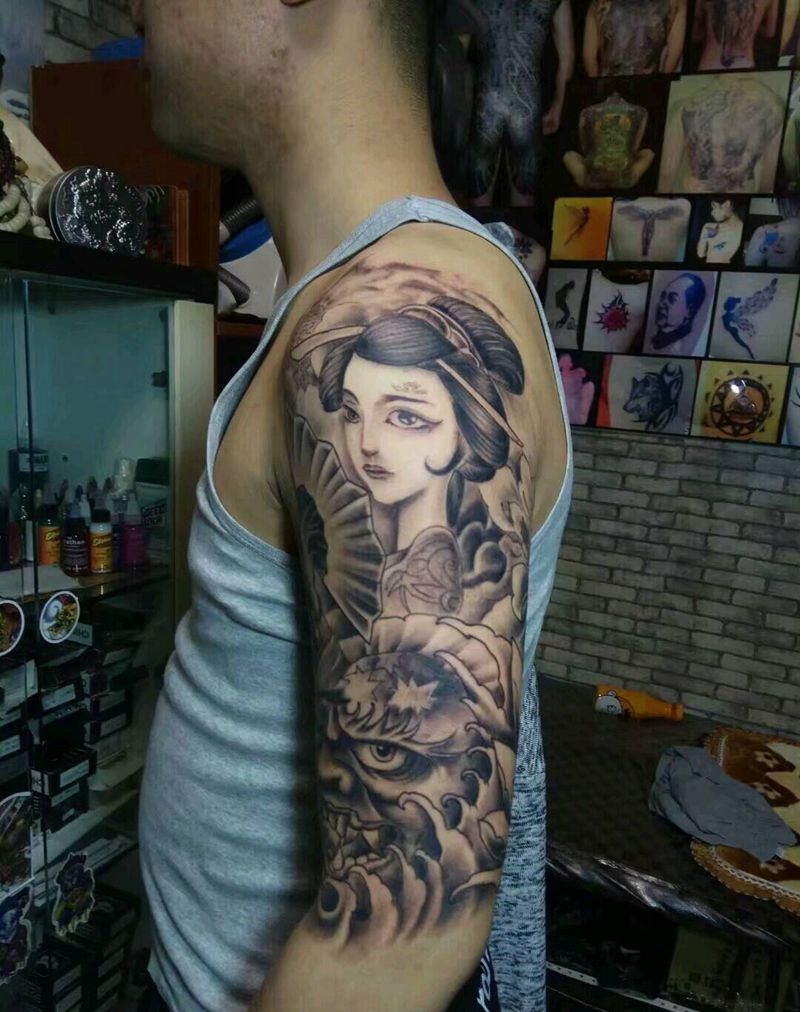 当前位置: 首页 >河北省秦皇岛市纹身店-秦皇刺青纹身图案>艺妓花臂纹身图片