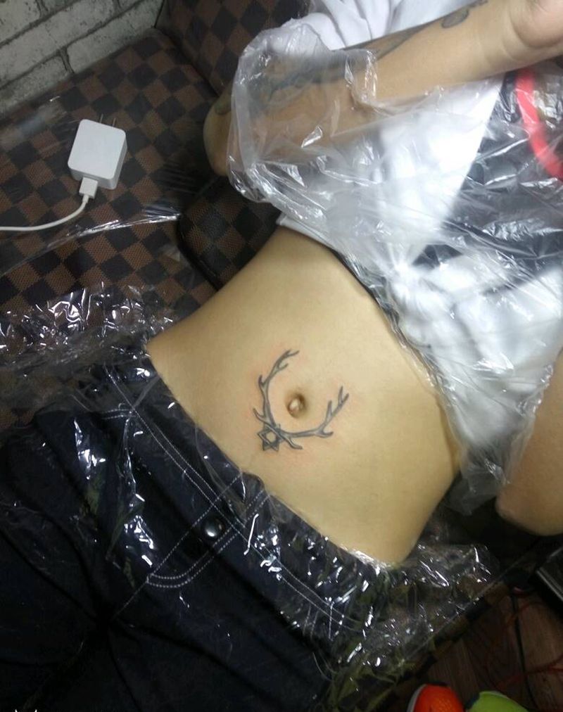 • T关于私处得爱!纹身图片_成品腹部清新字符图腾纹身图案