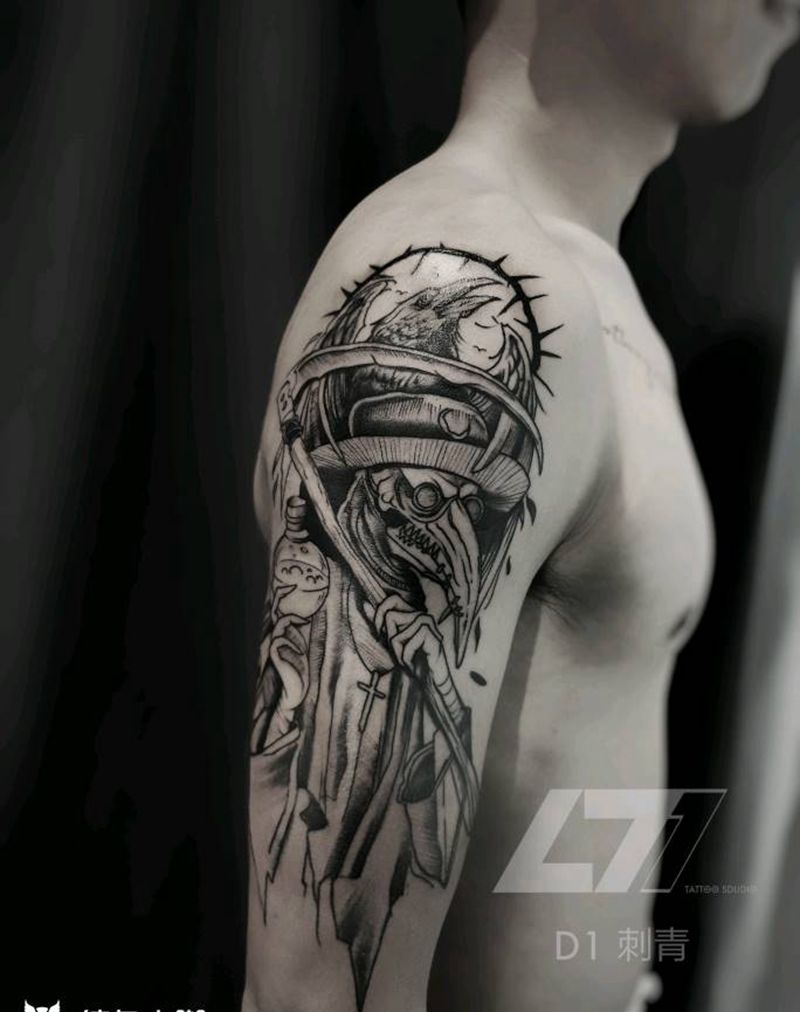 当前位置: 首页 >河北省唐山市纹身店-D1刺青纹身图案>鸟嘴医生纹身图片_手臂点刺New School纹身图案