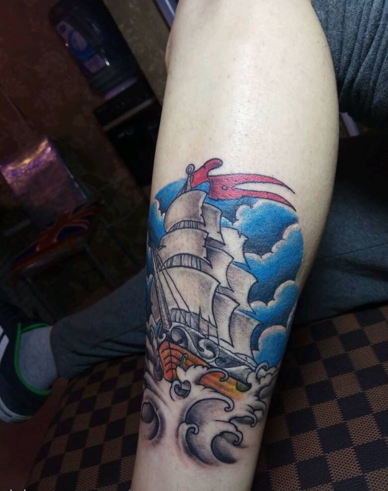 当前位置: 首页 >河北省秦皇岛市纹身店-秦皇刺青纹身图案>一帆风顺纹身图片_腿部欧美清新原创成品手稿插画纹身图案