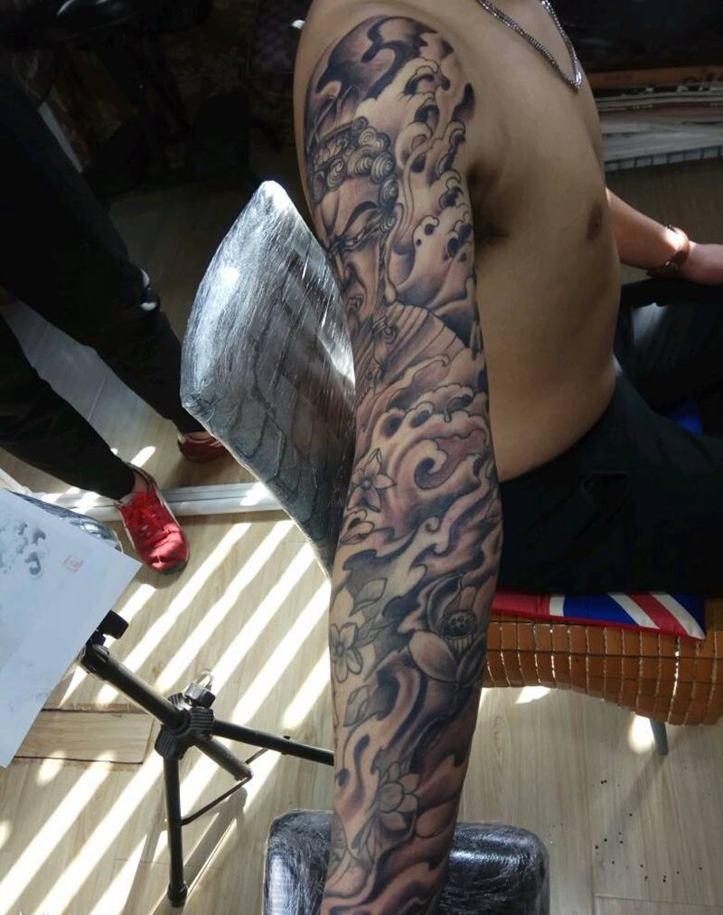 当前位置: 首页 >河北省秦皇岛市纹身店-秦皇刺青纹身图案>花臂纹身图片_肩部手臂传统人物宗教成品纹身图案