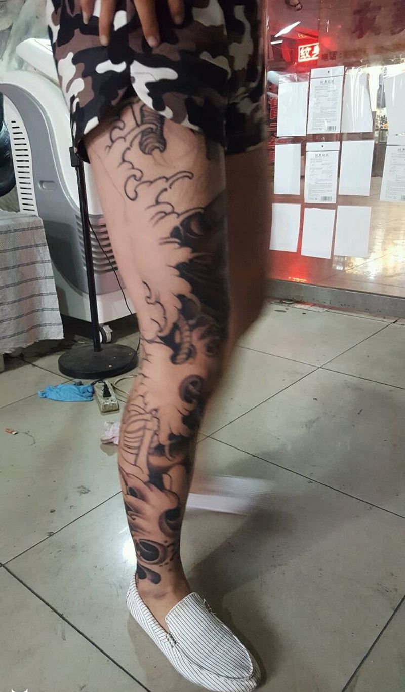 • T网红王老大花腿龙纹身图片_腿部新传统纹身图案