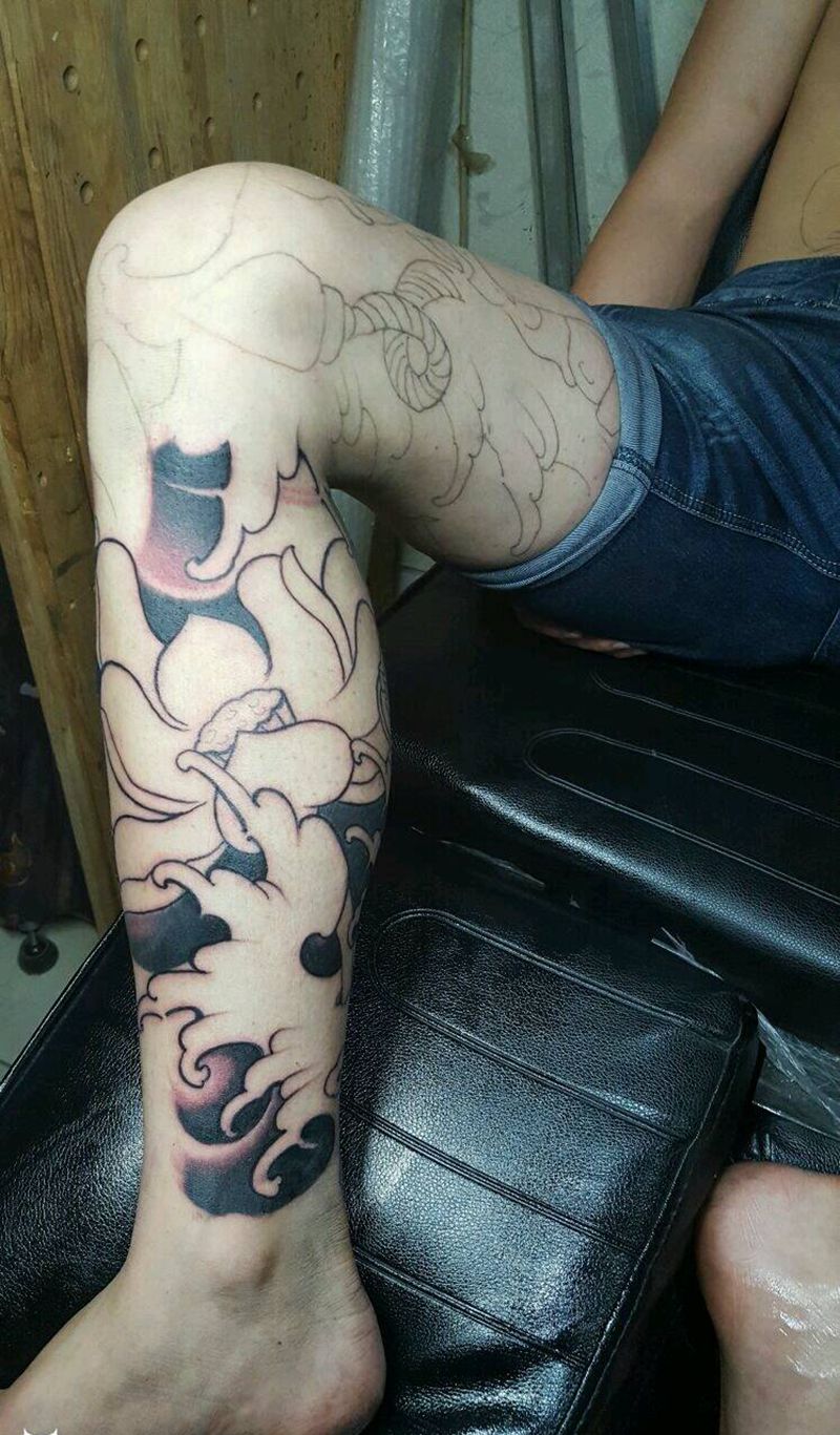当前位置: 首页 >河北省唐山市纹身店-大明刺客纹身纹身图案>包小腿荷花纹身图片