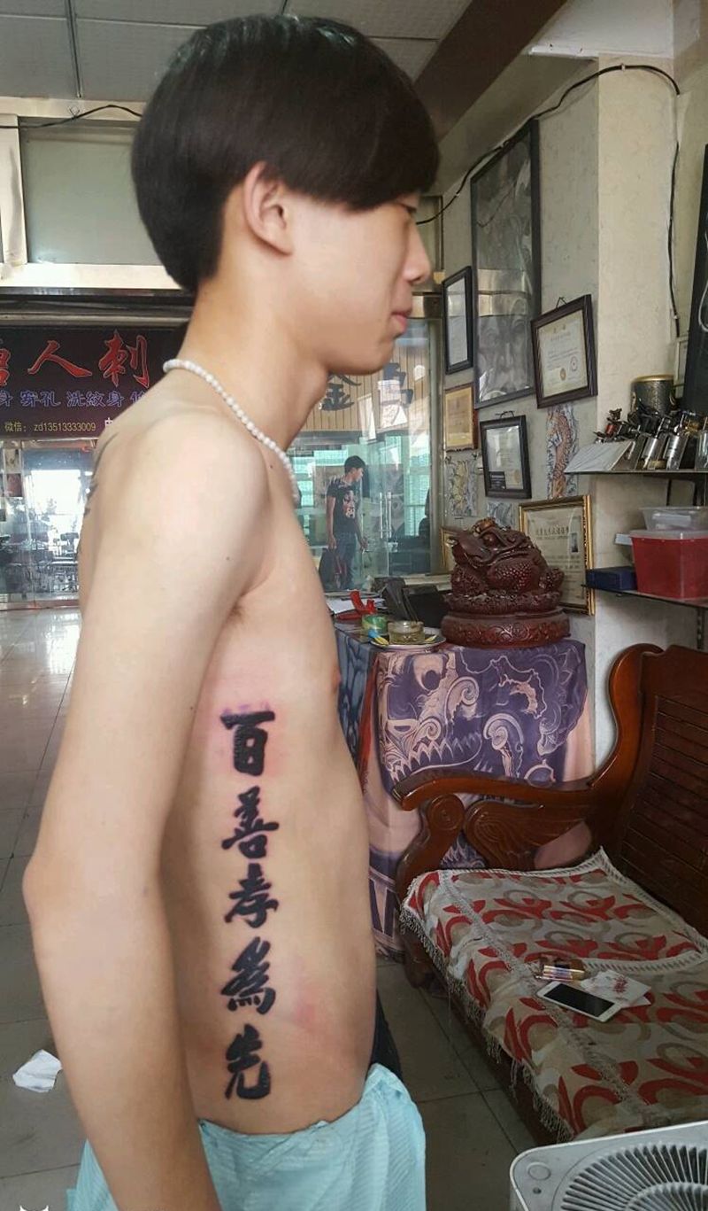 当前位置: 首页 >河北省唐山市纹身店-大明刺客纹身纹身图案>百善孝为先纹身图片