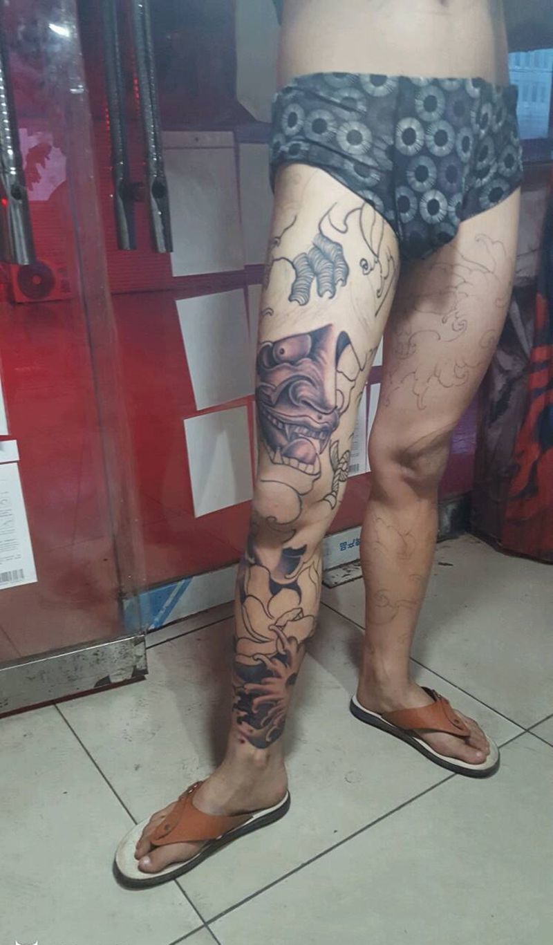 • T网红王老大花腿龙纹身图片_腿部新传统纹身图案