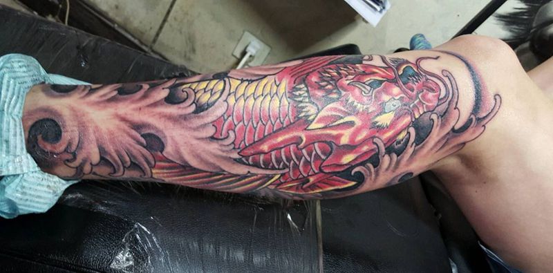 当前位置: 首页 >河北省唐山市纹身店-大明刺客纹身纹身图案>小腿彩色鳌鱼纹身图片