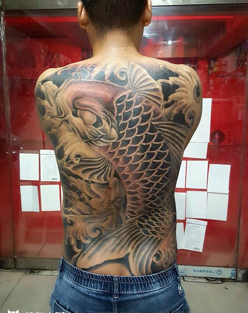 • 黑灰满背纹身图案