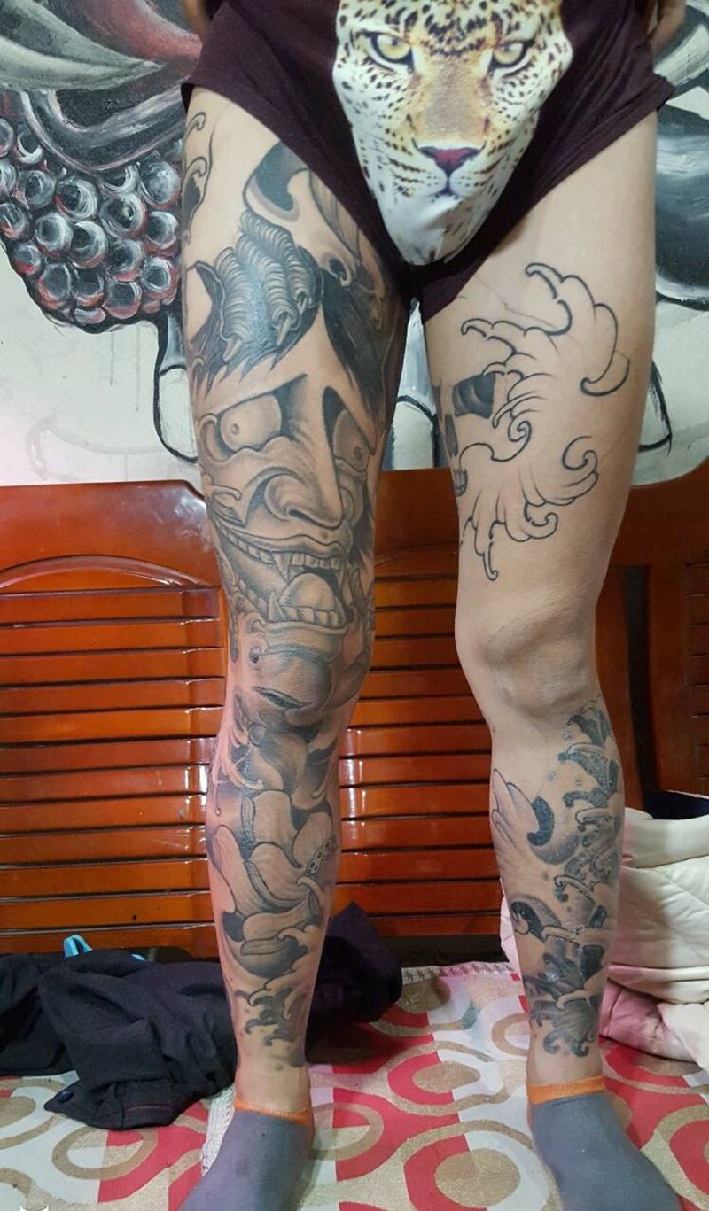 • T网红王老大花腿龙纹身图片_腿部新传统纹身图案