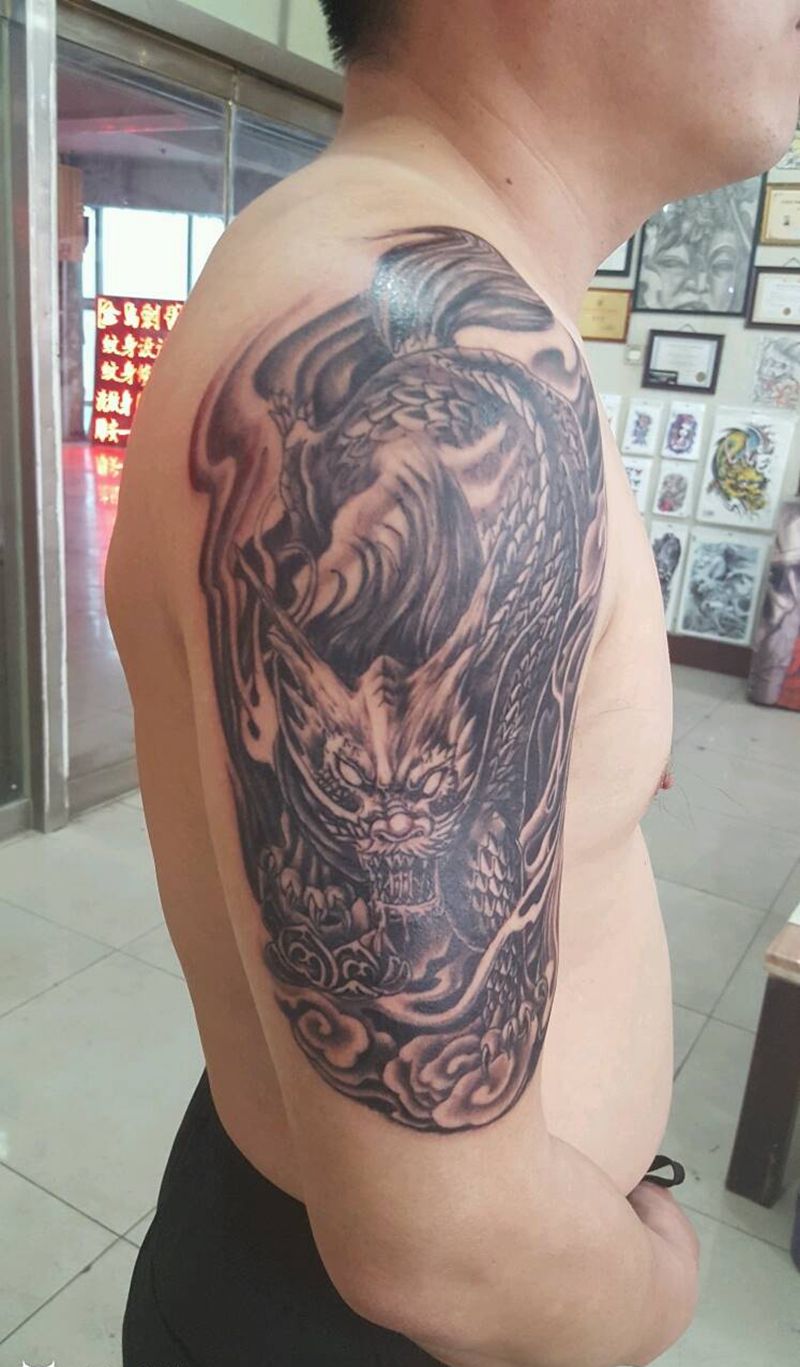 • 纹身吧推荐的披肩图腾半胛纹身图案作品展示
