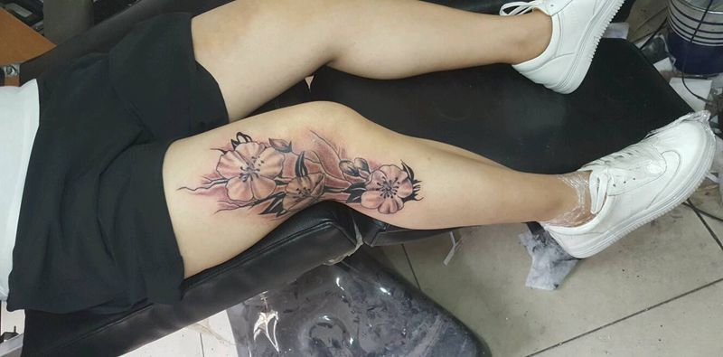 • T网红王老大花腿龙纹身图片_腿部新传统纹身图案