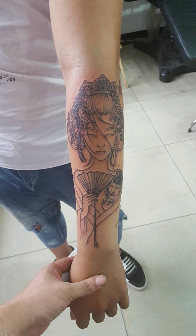 当前位置: 首页 >河北省唐山市纹身店-大明刺客纹身纹身图案>艺妓线条(小臂外侧)纹身图片