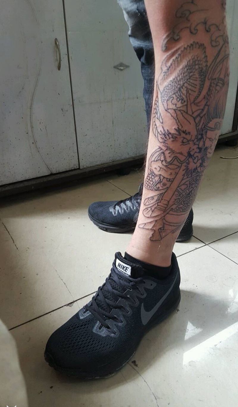 • T网红王老大花腿龙纹身图片_腿部新传统纹身图案