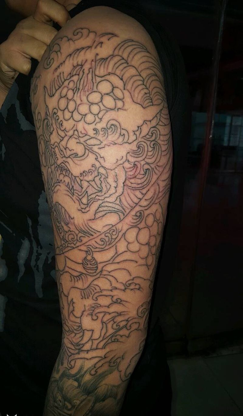当前位置: 首页 >河北省唐山市纹身店-大明刺客纹身纹身图案>包大臂唐狮线条纹身图片