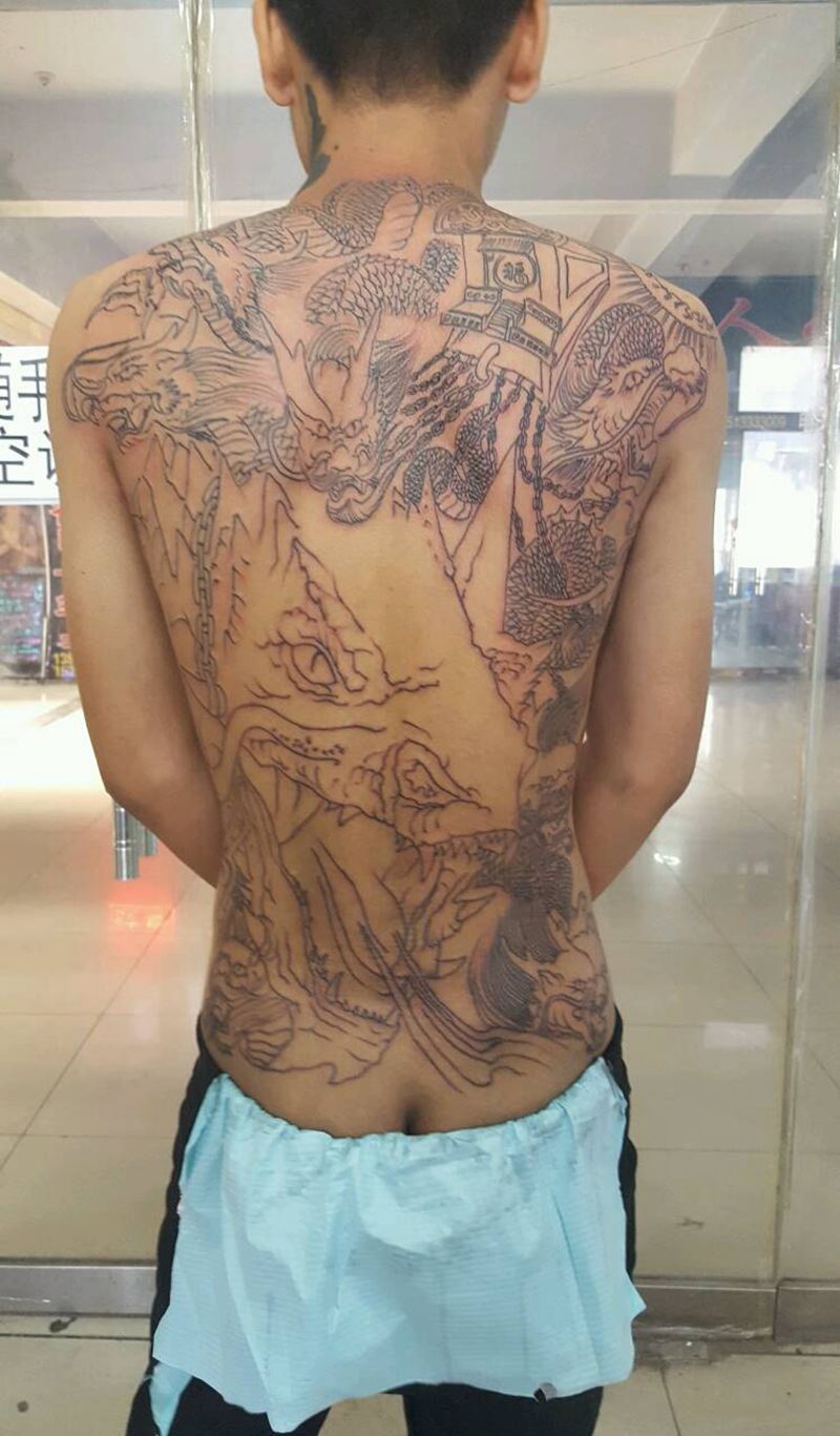 • 黑灰满背纹身图案