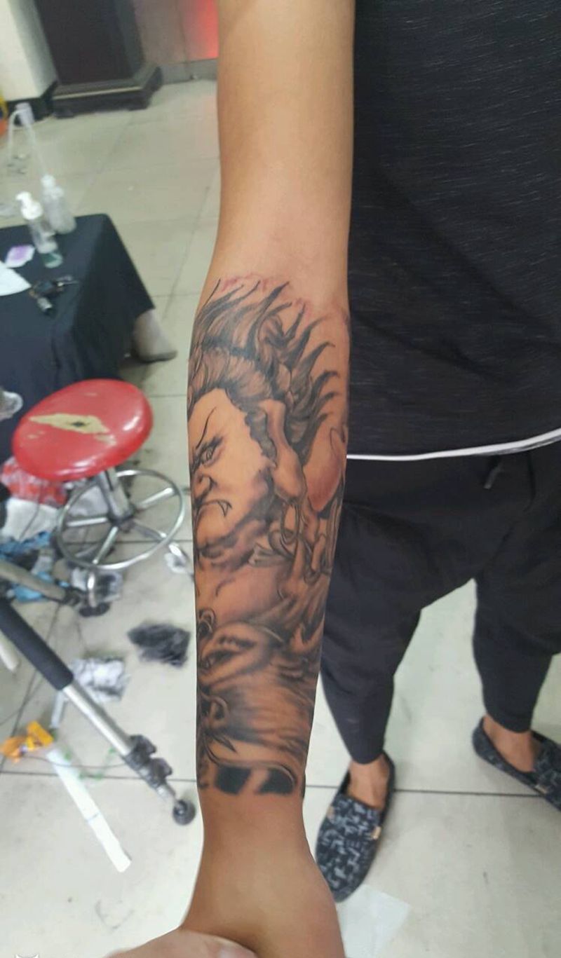 当前位置: 首页 >河北省唐山市纹身店-大明刺客纹身纹身图案>不动明王包小臂纹身图片