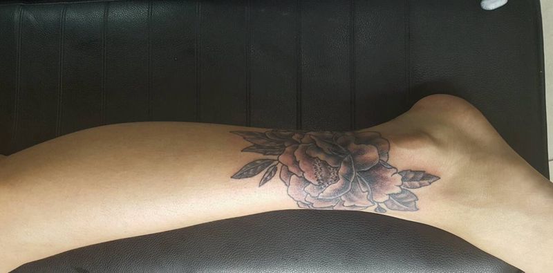• T网红王老大花腿龙纹身图片_腿部新传统纹身图案