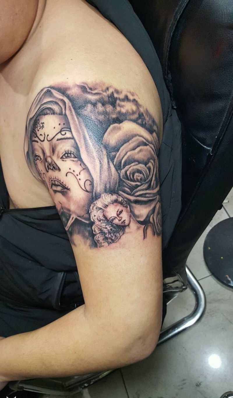 • 纹身吧推荐的披肩图腾半胛纹身图案作品展示