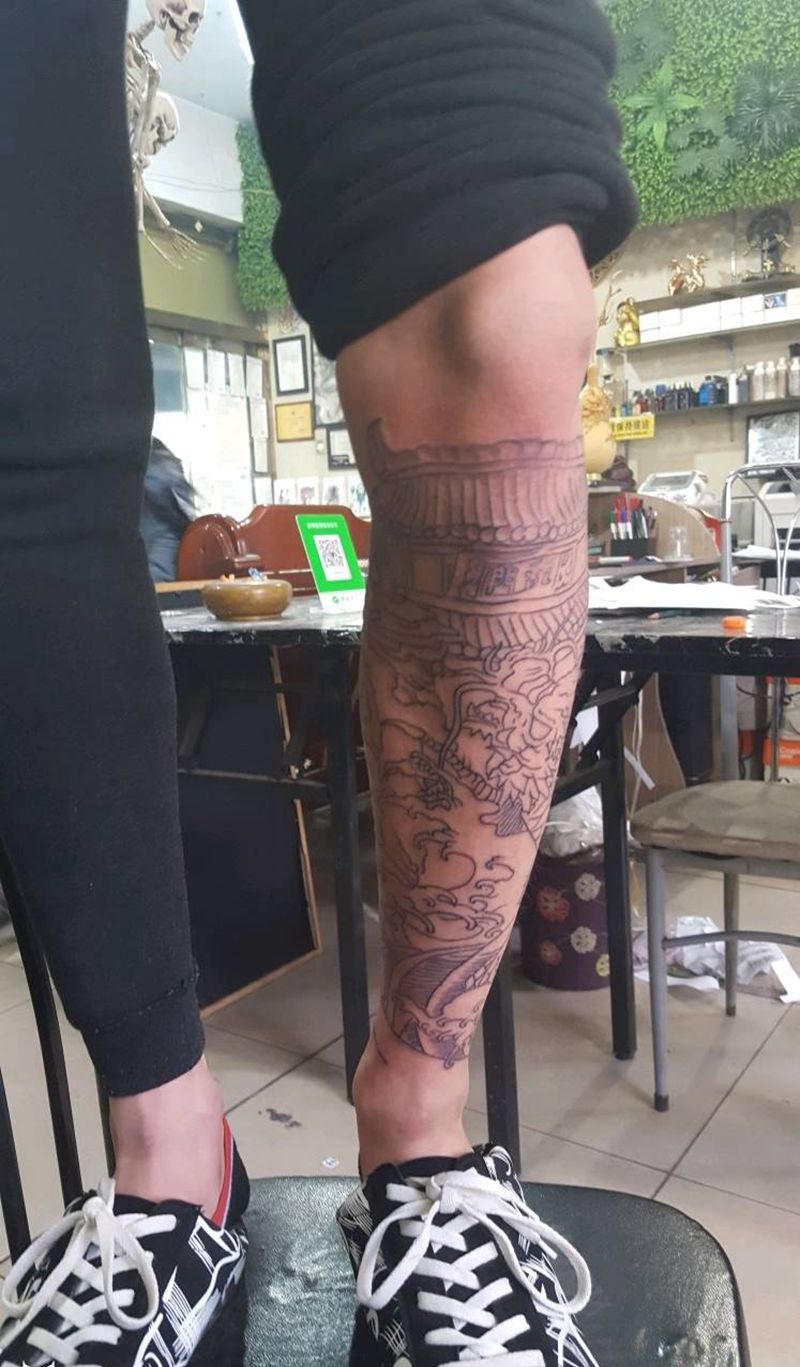 • T网红王老大花腿龙纹身图片_腿部新传统纹身图案
