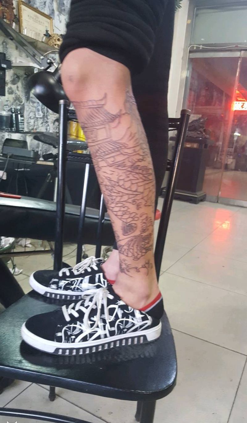 • T网红王老大花腿龙纹身图片_腿部新传统纹身图案