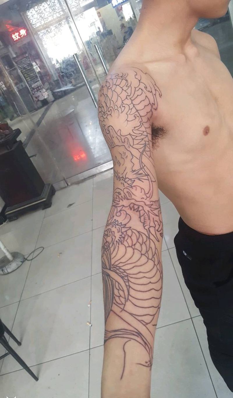 花臂线条纹身图片