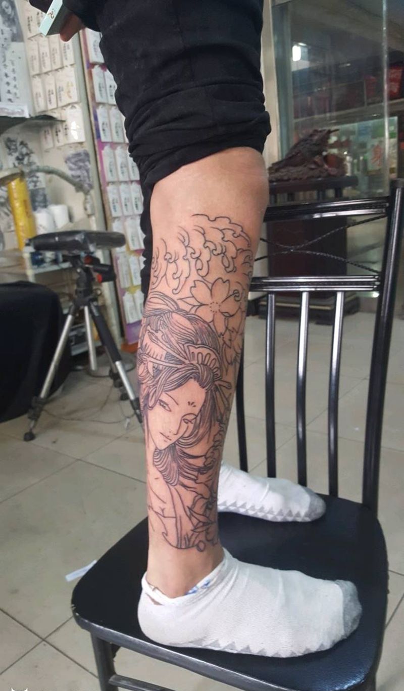 当前位置: 首页 >河北省唐山市纹身店-大明刺客纹身纹身图案>艺妓线条纹身图片