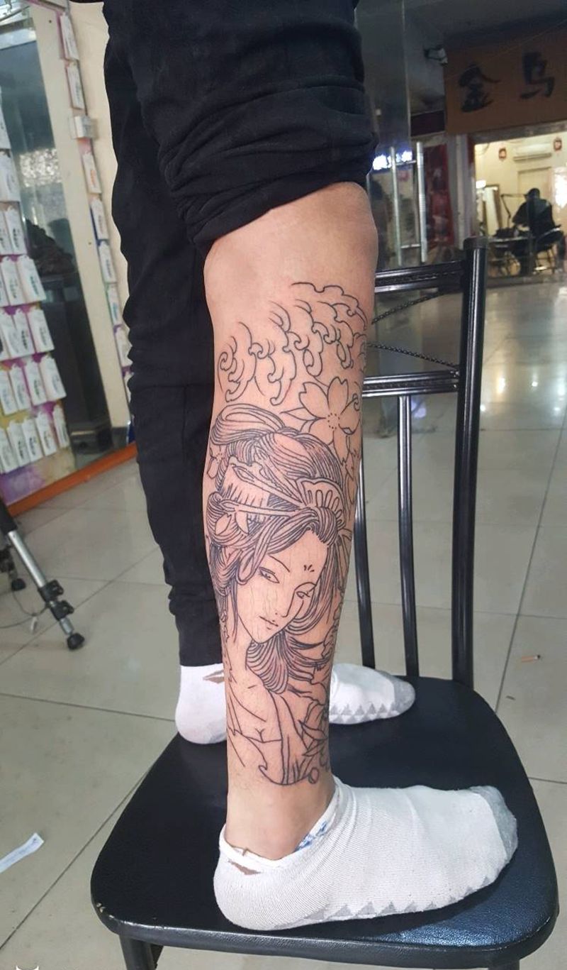 当前位置: 首页 >河北省唐山市纹身店-大明刺客纹身纹身图案>艺妓线条纹身图片
