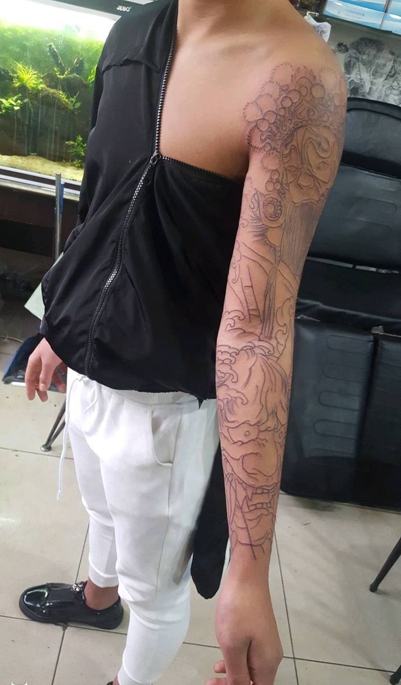 当前位置: 首页 >河北省唐山市纹身店-大明刺客纹身纹身图案>花臂线条纹身图片