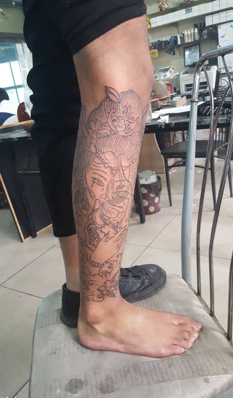 • T网红王老大花腿龙纹身图片_腿部新传统纹身图案