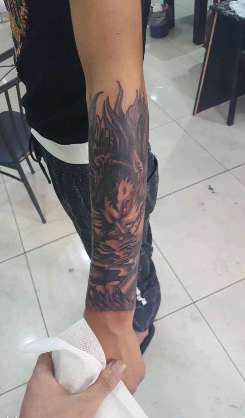 当前位置: 首页 >河北省唐山市纹身店-大明刺客纹身纹身图案>包小臂斗战圣佛纹身图片