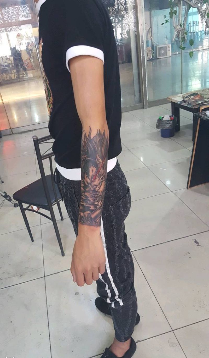 当前位置: 首页 >河北省唐山市纹身店-大明刺客纹身纹身图案>包小臂斗战圣佛纹身图片