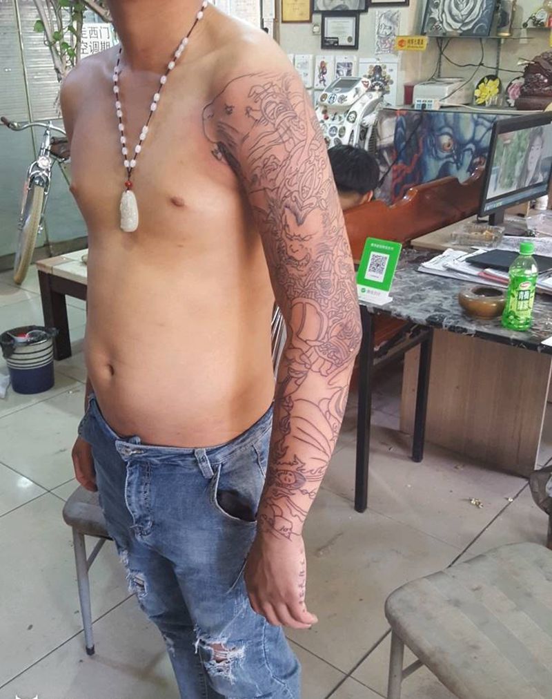 当前位置: 首页 >河北省唐山市纹身店-大明刺客纹身纹身图案>花臂线条纹身图片