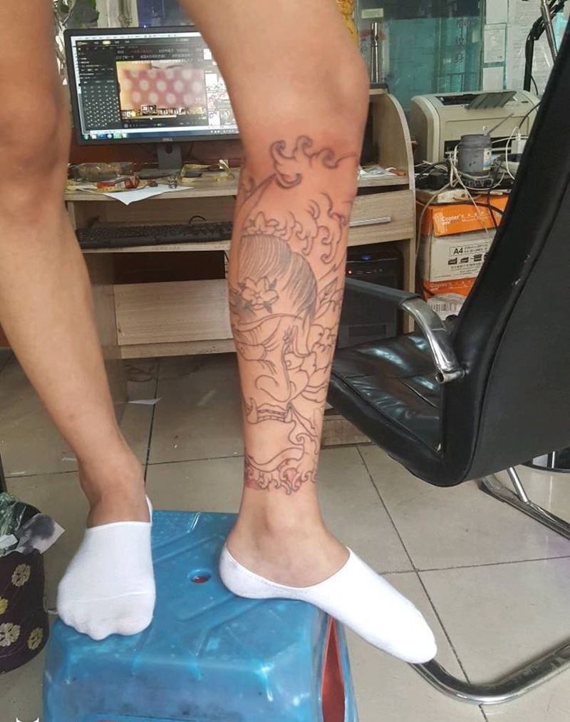 • T网红王老大花腿龙纹身图片_腿部新传统纹身图案