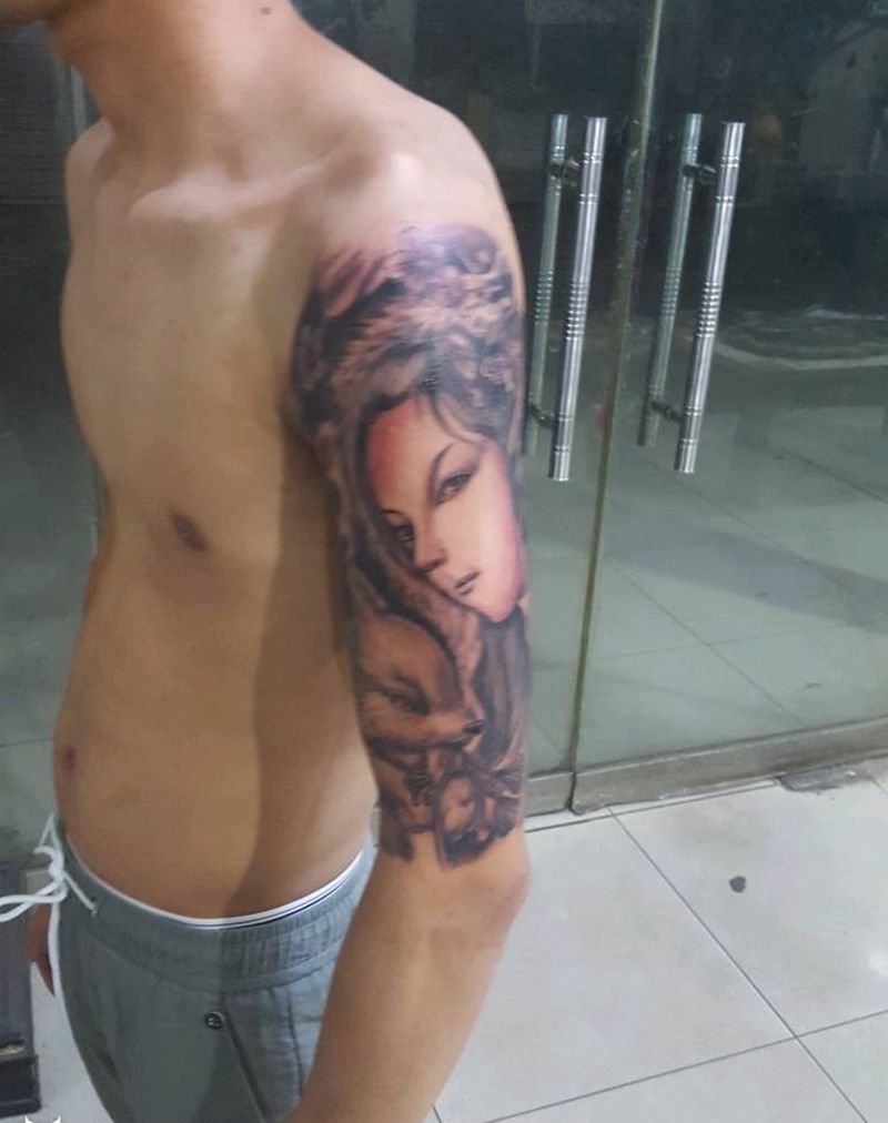 • 纹身吧推荐的披肩图腾半胛纹身图案作品展示