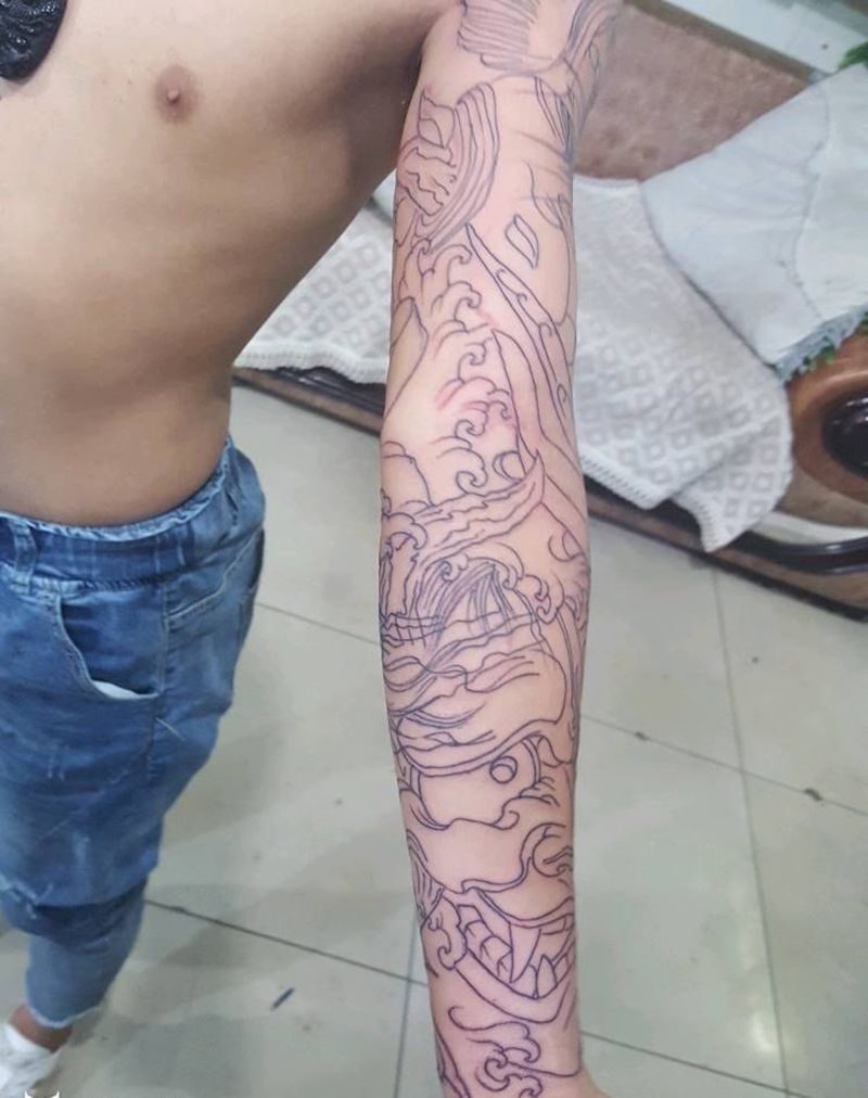 当前位置: 首页 >河北省唐山市纹身店-大明刺客纹身纹身图案>花臂线条纹身图片