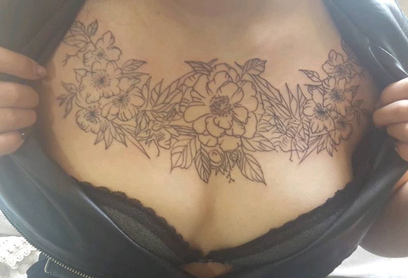 • 女性大花胸纹身_43张霸气漂亮的女性大花胸纹身图案作品