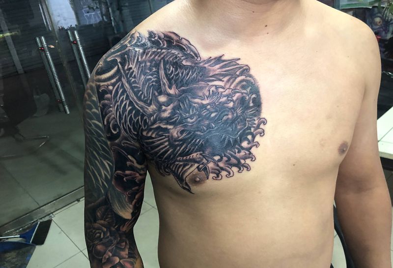 • 男性大花胸_42张优秀的男性大花胸纹身图案图片